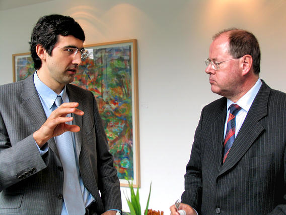 ... und abseits des Bretts: Wladimir Kramnik im Gespräch mit Finanzminister Peer Steinbrück